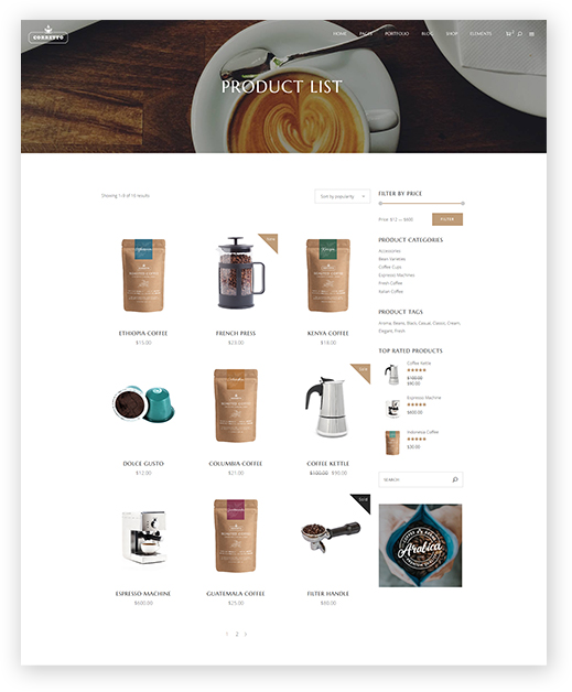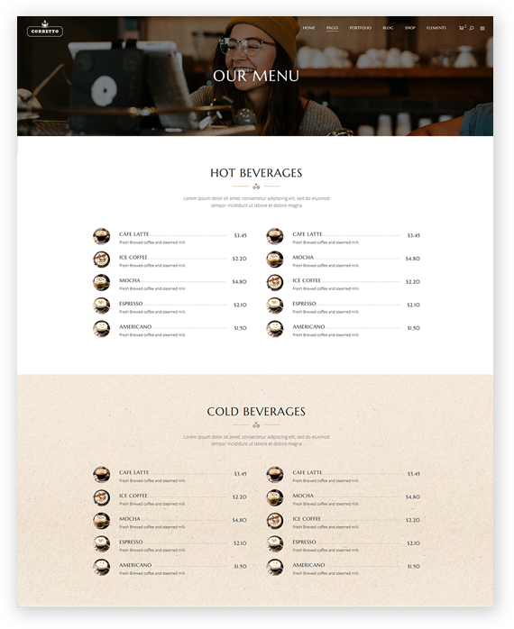 CorrettoMade using only the finest coding & design practices there are, Corretto is sure to make a perfect main ingredient for creating an irresistible coffee shop website.Purchase